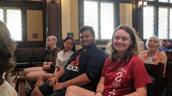 As seniors in high school approach graduation they are invited to bridge to young-adulthood. During the Bridging Ceremony these youth are embraced by their peers and youth group facilitators and then welcomed by our young adults as their new relationship with our congregation is celebrated. The Bridging Ceremony usually occurs on the third Sunday in June.
