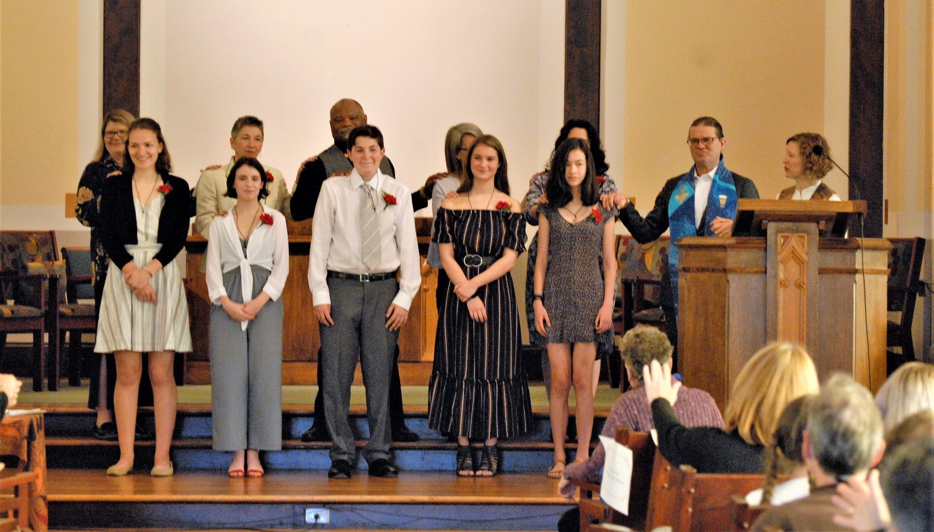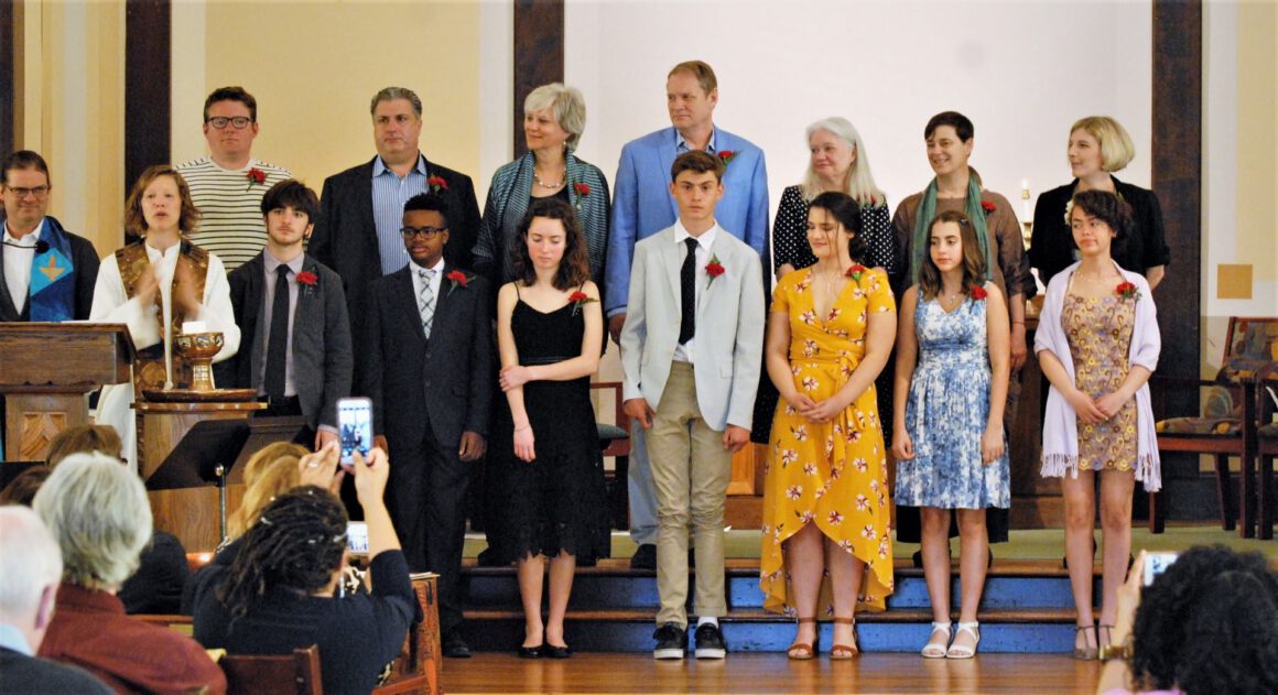 Youth who participate in our congregation’s Coming of Age year-long curriculum, prepare together, and under the guidance of chosen congregational mentors, to leave childhood. Their preparation cumulates in a Coming of Age Ceremony where they publicly articulate their own beliefs and affirm their own values. After participating in this ceremony, they become ‘graduates’ and are invited to become members of the congregation.