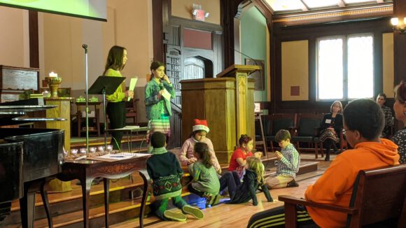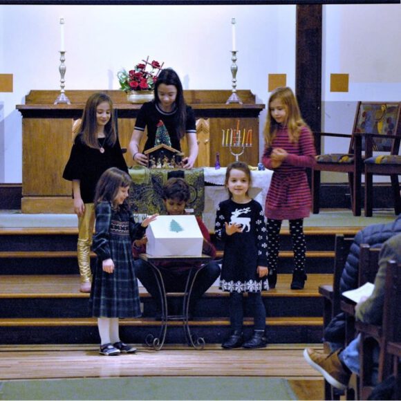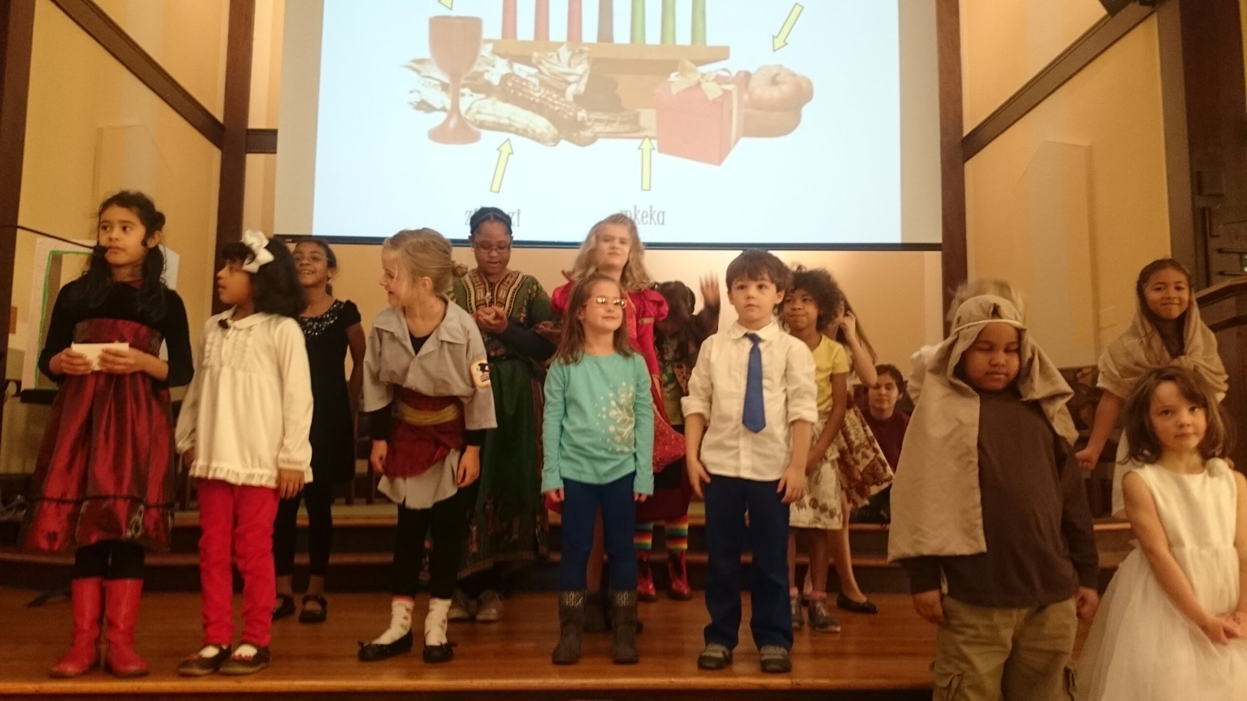 During the month of December, on either the second of third Sunday, children and youth participate in a pageant. Our pageant honors the variety of holidays that often overlap during the early winter months – Diwali, Christmas, Hanukah, Kwanza, and Solstice.