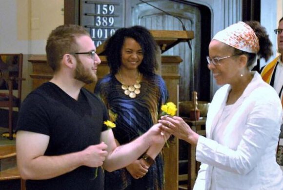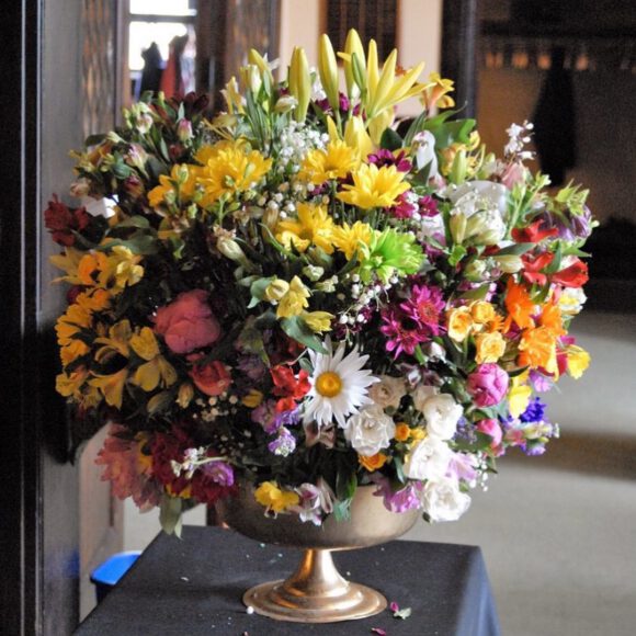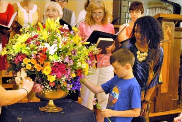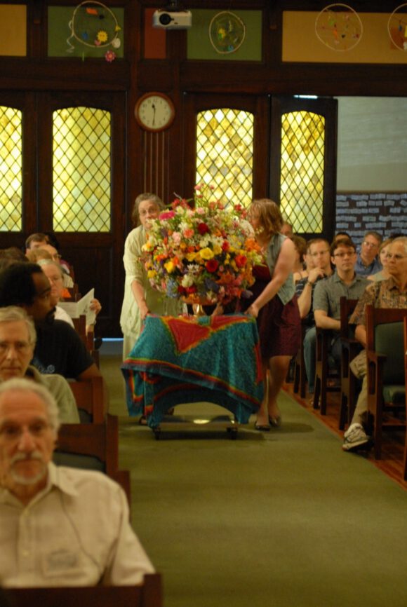 The Flower Communion held on the third Sunday in June, celebrates beauty, human uniqueness, diversity, and community. Originally created in 1923 by Unitarian minister Norbert Capek of Prague, Czechoslovakia, the Flower Ceremony was introduced to the United States by Rev. Maya Capek, Norbert’s widow. Everyone in the congregation brings a flower to be placed in a shared vase. The congregation and minister bless the flowers, and afterwards each person brings home a different flower than the one they brought.