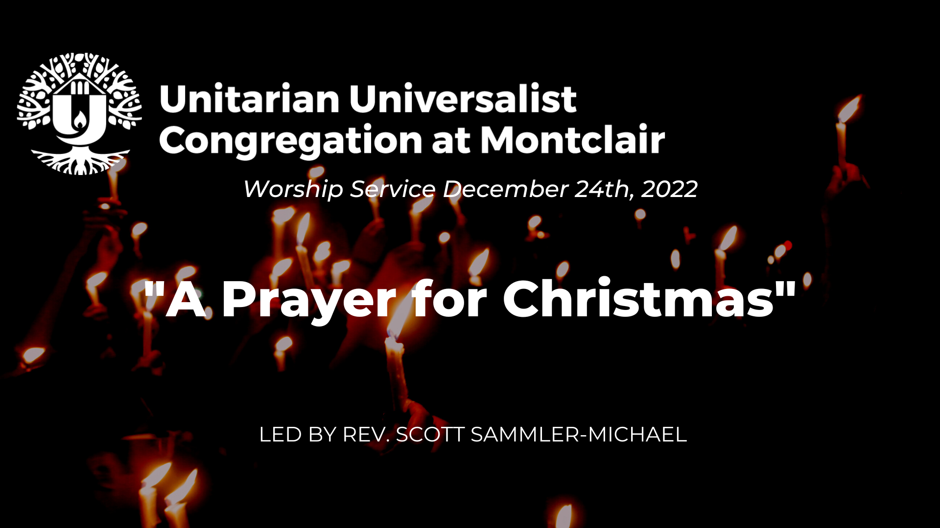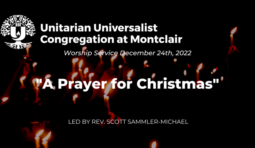 “A Prayer for Christmas” led by the Rev. Scott Sammler-Michael. In this darkest week of the year, on this special night, join us for a candlelight Christmas Eve service. Together we will compose prayers worthy of the Christmas holiday, a prayer and stories of good tidings for all people everywhere. As always, we will have a big choir and a small orchestra!