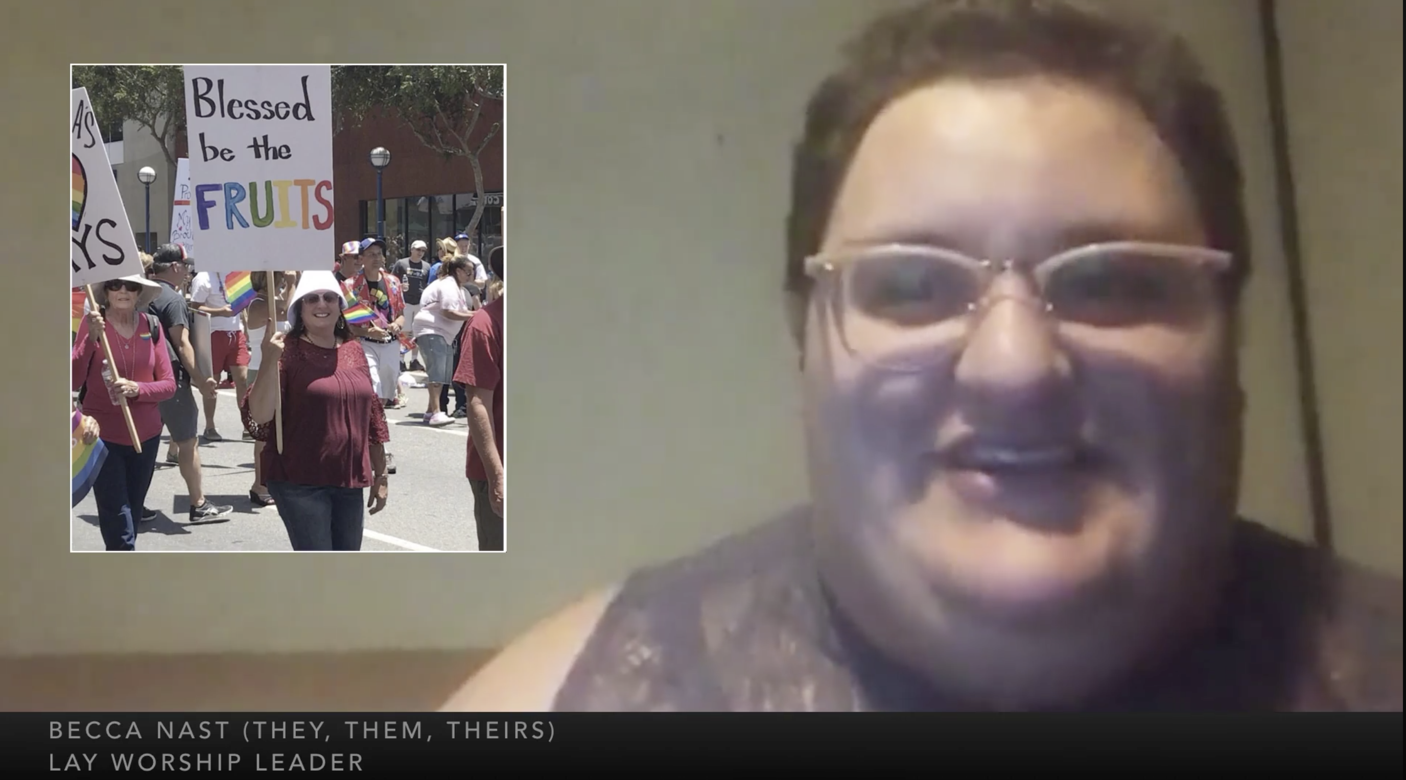 The Unitarian Universalist Congregation at Montclair’s virtual worship service “Blessed Be the Fruits,” an exploration of LGBTQ humor as a means of compassion and justice. Becca Kennedy Seibert Nast, leader of UUCM’s Out Front, delivers the sermon.