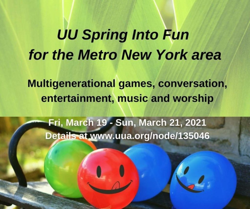 We will have a fun Friday evening gathering, Saturday morning connections with leaders in similar roles between congregations, choices of multigenerational fun Saturday afternoon, and a multigenerational talent show Saturday evening. And we hope to inspire UU’s to visit each other’s Sunday morning services on March 21st.